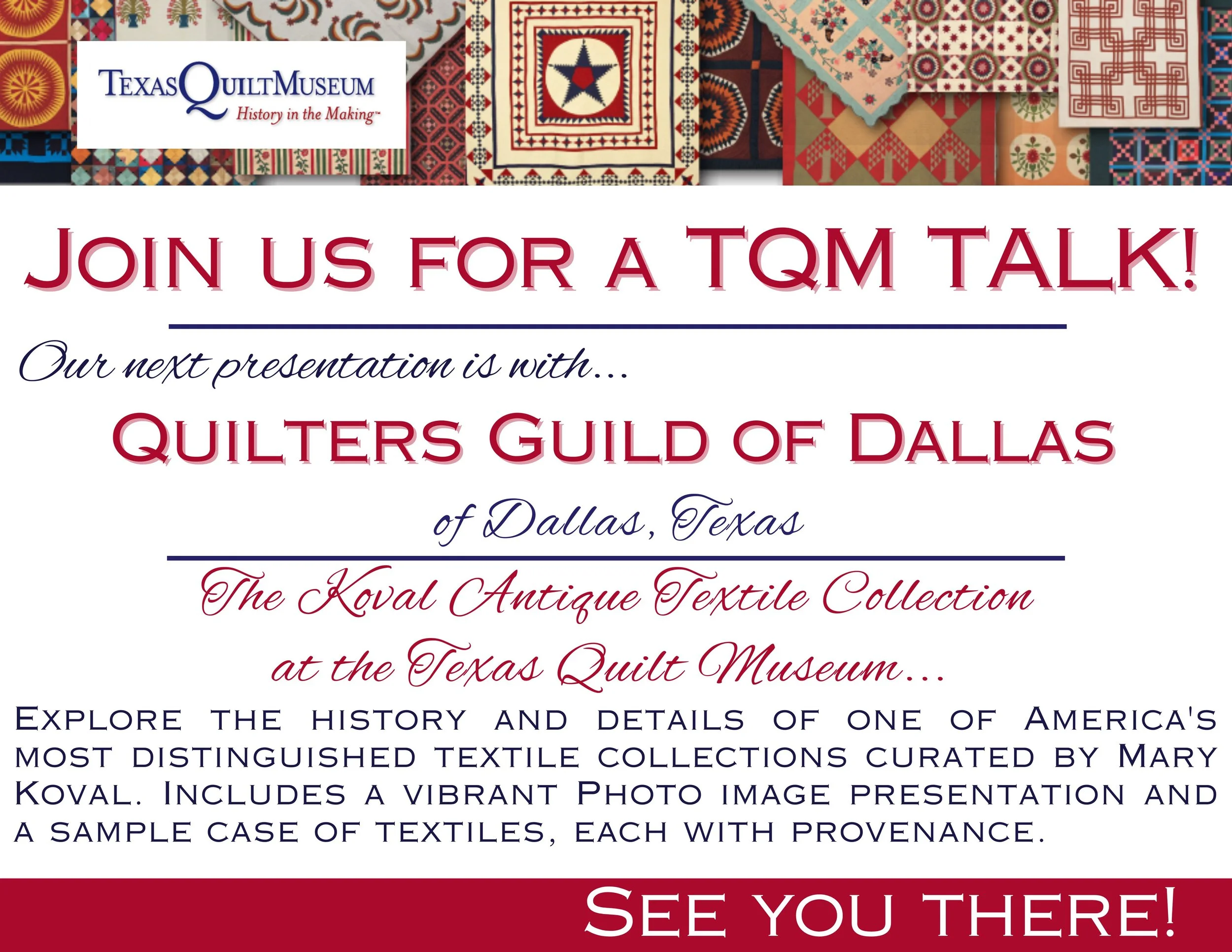 TQM TALKS - Speaking Engagement - Quilters Guild of Plano, TX